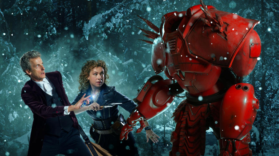 Given that this episode takes the Doctor and River to the Singing Towers of Darillium, a location mentioned in Forest of the Dead as being where they spent their last night together, it's highly likely that this is the only opportunity we're going to have to see Alex Kingston and Peter Capaldi on screen together. Luckily, Husbands knows this and lets nothing stand in the way of what we want to see. The idea of River not recognising one of the Doctor's incarnations is used to full effect and every possibility is explored. We see the Doctor having to pretend to be surprised by the TARDIS, we get to hear what River really thinks of the Doctor, and we get to see what she does when she thinks he's not watching. Essentially, the first two-thirds of this special are like watching the Doctor cameo in The River Song Show, and it's glorious. I haven't got around to listening to Big Finish's River Song spin-off yet, but if it's anything like this, sign me up.