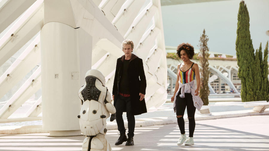 But even as a stripped-back boring version of Doctor Who for the new fans to get on board with, it isn't as good as it could've been. Don't misunderstand me: I'm not opposed to new fans. I'm not some ridiculous fandom gatekeeper who draws a hard line between 'hardcore' and 'casual' audiences. Anyone who thinks their love of a TV show makes them any more or less 'hardcore' in any aspect of their life likely needs to get one. I understand the necessity of bringing the show back to basics once in a while, especially when introducing a new cast member. The problem is that Bill is completely underserved here because the episode is more concerned with introducing us to the show than with introducing us to the show's new lead. For the most part, this episode is the Doctor and Bill exploring a stunning alien city together, but Bill is given no depth. With Clara's second episode, The Rings of Akhaten, the whole thing revolves around her backstory, her emotions, the loss of her mother, and her reactions to the new world she finds herself in. Here, all Bill gets to do is reiterate stuff about the mythology that anyone who's read the wikipedia summary would know. When the Doctor is rambling about the city and Bill is trying to get him to stop and clarify his comment about having two hearts, I related far more to the Doctor in that moment than I did to Bill. I wanted to reach through the screen and shout "Yes, Bill, we know! 'Dr Who has two hearts' is basic stuff! Shut up and let him exposit, please!" I absolutely adore Bill Potts and I absolutely adore Pearl Mackie as Bill Potts but this episode just gave her nothing. And for a new companion's second episode, that's sort of inexcusable. We're going into the third episode next week just as unfamiliar with her as we were at the end of The Pilot.