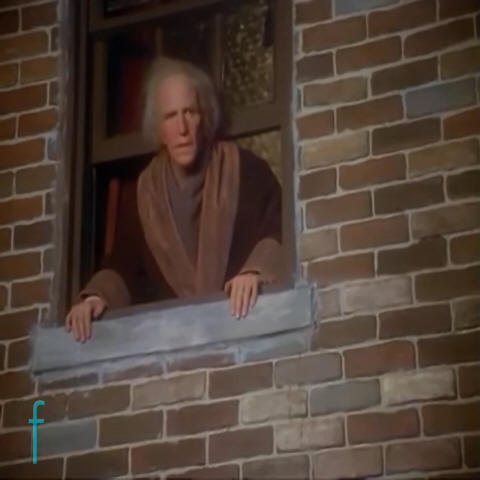 So here's a weird one: a modern America-based adaptation of A Christmas Carol. Luckily, the Scrooge/urchin scene survived the adaptation process. I'm glad that this iconic moment in literature is clearly so universal. This is quite a good version of the scene but it's ever so slightly off-kilter. The costume design for example is good in some places, like Scrooge's big ugly robe, but in others it just misses the mark. There's a really amazing urchin cap in this scene but unfortunately it isn't the one on the urchin's head. Instead it's perched on the head of the back-up urchin, who provides a nice vocal harmony on the words 'Christmas Day!'