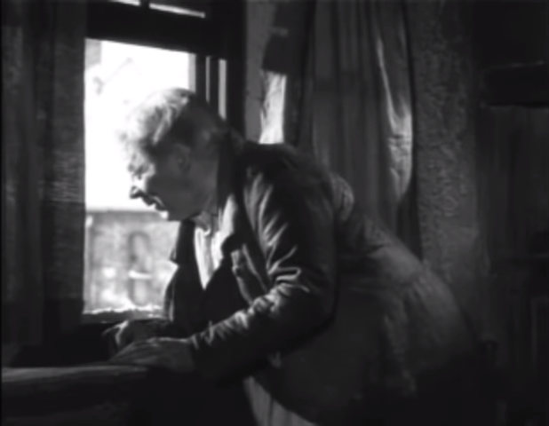 We're now going to step back in time almost half a century with our analysis of shot-reverse-shot Scrooge/urchin conversations. In this, the first ever sound film adaptation of A Christmas Carol, we can see the rules of the perfect cinematic Scrooge/urchin conversation just starting to come together. We have our first shot focusing on Scrooge looking out the window and our second shot focusing on the urchin. The biggest deviation from day 1's scene is that the camera is initially inside looking at Scrooge in shot 1 rather than mimicking the urchin looking up at him from the outside, a perspective we are denied until midway through the conversation. This has the effect of focusing us more on Scrooge rather than the connection between him and the urchin (indeed this adaptation has been titled 'Scrooge' after the man rather than 'A Christmas Carol' after the story he inhabits, giving us an insight into where Edwards' priorities lay).