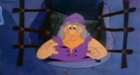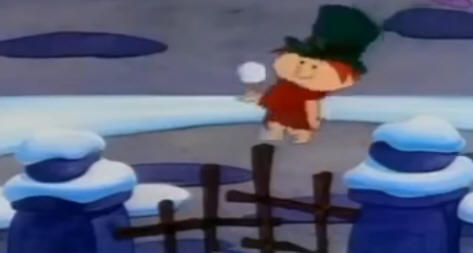 The animation in this one is quite good, and both Scrooge and the urchin have good strong designs that are simultaneously Dickensy and Cavemany. If nothing else, it's an aesthetic combination that lends itself to a more unique Scrooge nightgown and urchin cap, something a lot of the versions we've looked at lately have lacked. Even if the goal here is to replicate a default nightgown style within this setting, 'patterned like a cartoon dinosaur' is at least a more interesting default. The detail that the urchin is being sent to buy a prized turkeysaurus is also quite nice. The biggest deviation from the formula here is that the urchin throws a snowball at Scrooge when he first tries to get his attention. Unlike other deviations from previous days, this is one I like because it adds to the scene rather than subtracting. Overall, a decent version.