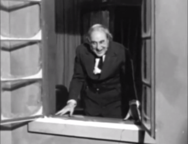 Normally I'd be interested in a version of the scene filmed entirely in one long unbroken shot, Spielberg-style, but here the one shot that comprises the entire exchange is terrible. There's no sense of height to this window. If it weren't for the fact that he was looking down, we could easily believe Scrooge was talking to the urchin from the ground floor. Terrible. And there's just no personality in the shot at all.